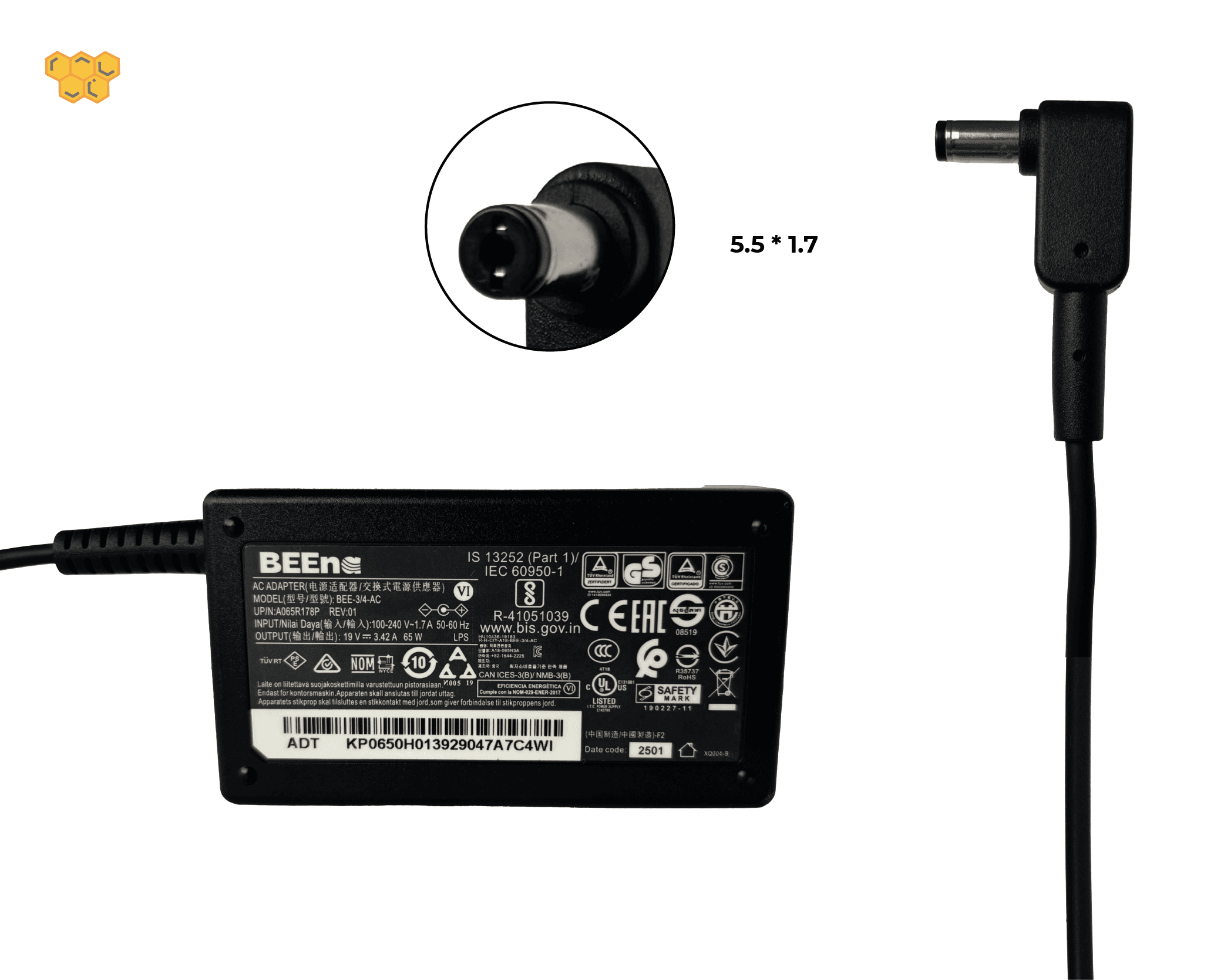 Cargador BEEna para portatil ACER 19V. 3.42A 65W 5.5*1.7 ORIGINAL