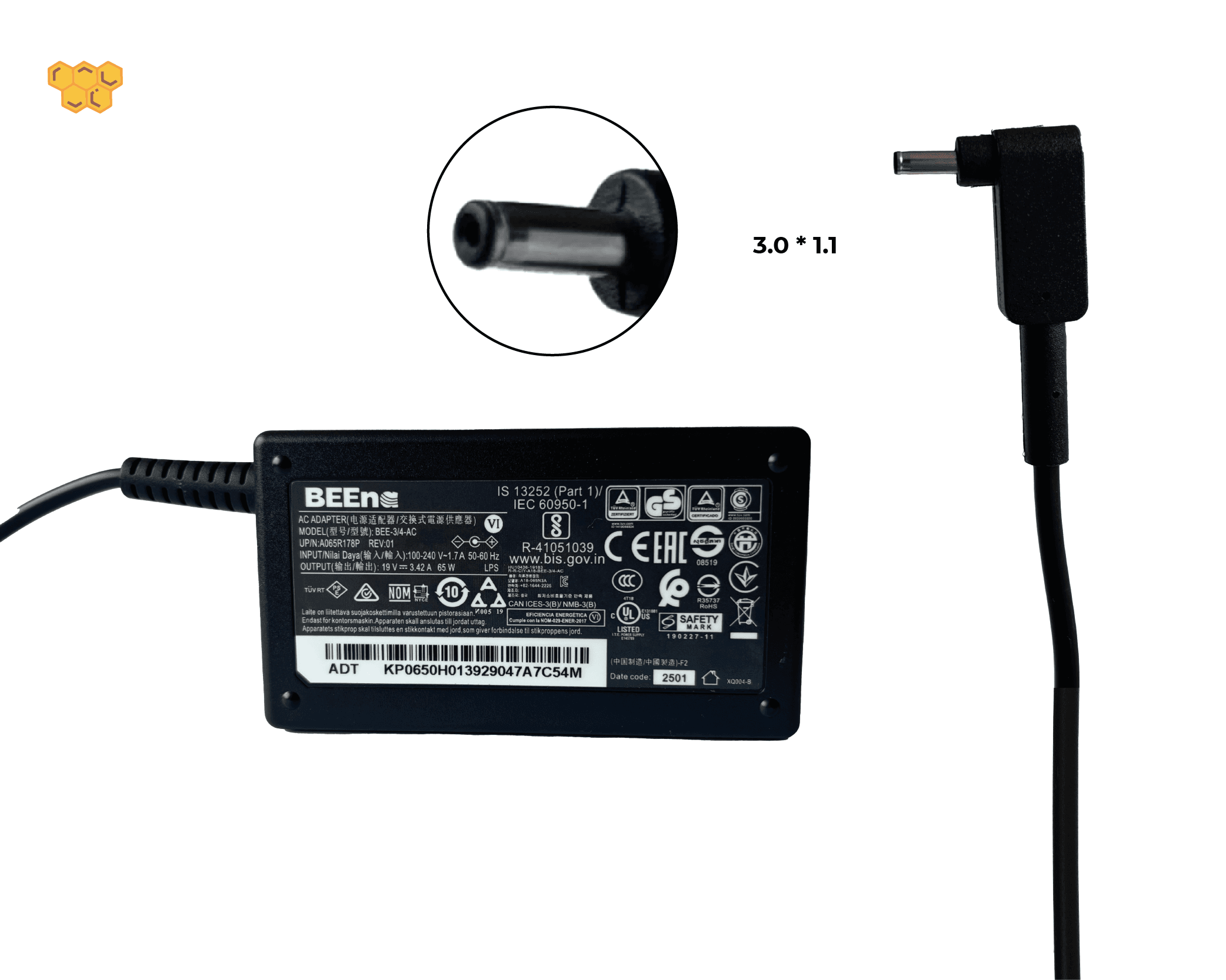 Cargador BEEna para portatil ACER 19V 3,42A 65W 3.0 *1.1 ORIGINAL